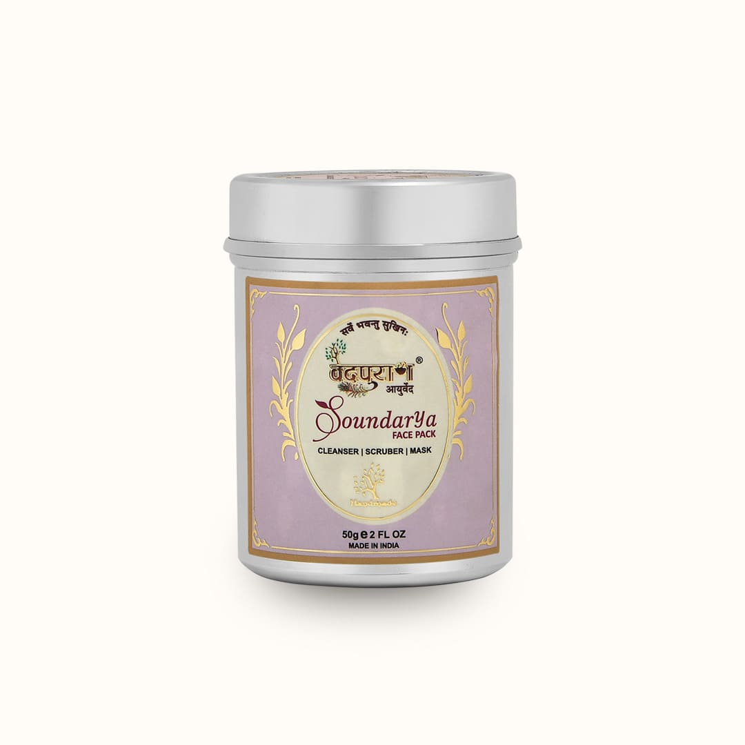 Take 1–2 teaspoons of Soundarya Face Pack powder and mix it with rose water or curd to form a smooth paste. Apply evenly on cleansed face and neck, avoiding the eye area. Leave it on until it dries completely, then rinse off with normal water. Use 2–3 times a week for best results.
